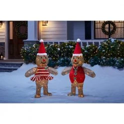 Home Accents Holiday 3 ft Warm White LED Gingerbread Girl and Boy Holiday Yard Decoration