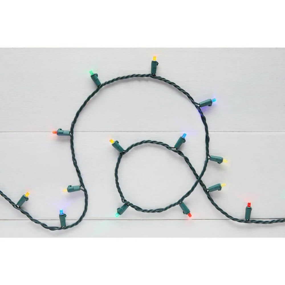 Set up a stunning light effect for the holiday season with this Home Accents Holiday multicolor LED light string. The 100 dome-shaped bulbs deliver a vivid array of hues for seasonal cheer, and the 28.8-foot length provides an extended reach to cover bushes and shrubs, porch rails or your Christmas tree. Each energy-efficient bulb stays cool to the touch for added peace of mind. Connect this Home Accents Holiday multicolor LED light string with up to 21 additional sets to provide full coverage for your roofline or fence.