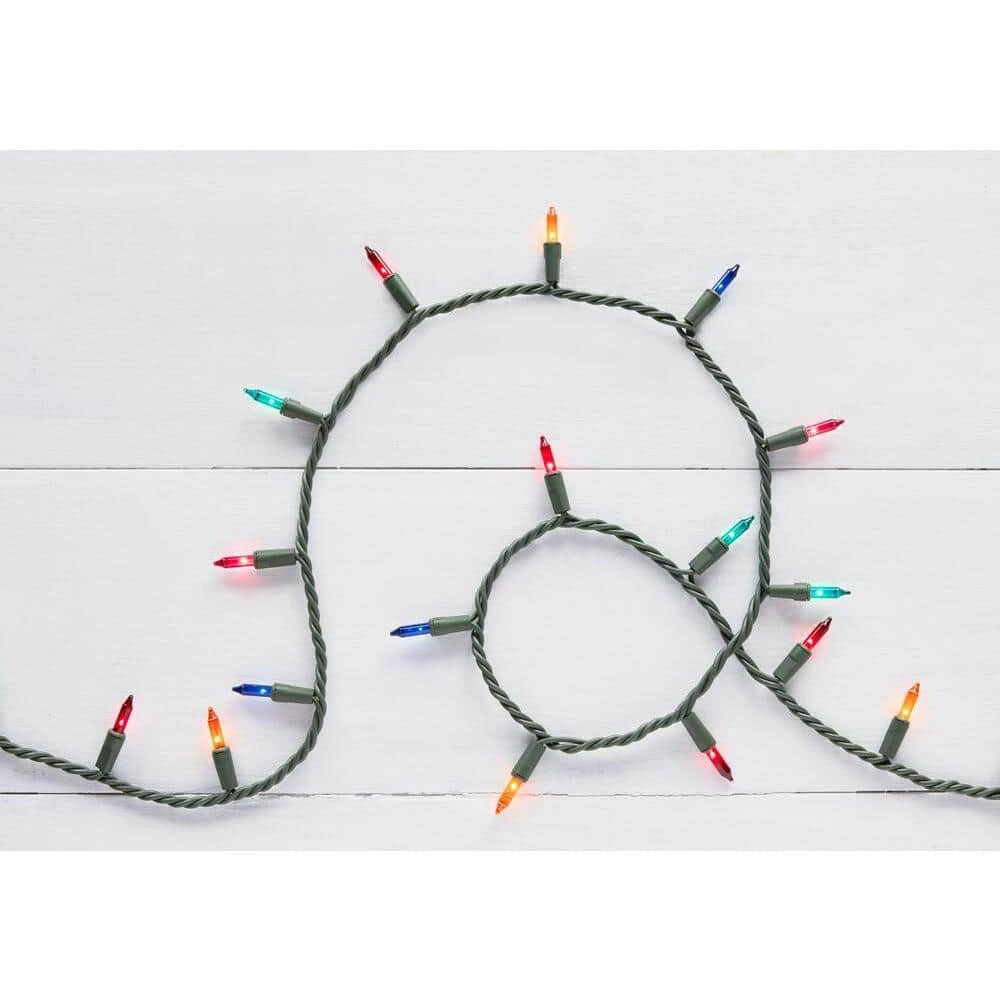 Light up your Christmas Eve with this 100-light multicolor mini incandescent light string. Sparkling light in a range of brilliant colors illuminates your tree or home, bringing warm holiday cheer to your yuletide gatherings. The 22-foot green string is easy to hide among the branches of your tree, and the 20.6 feet of light coverage ensures there are no bare spots. With extra bulbs and fuses included, this multicolor mini incandescent light string offers years of use in your holiday decorating.