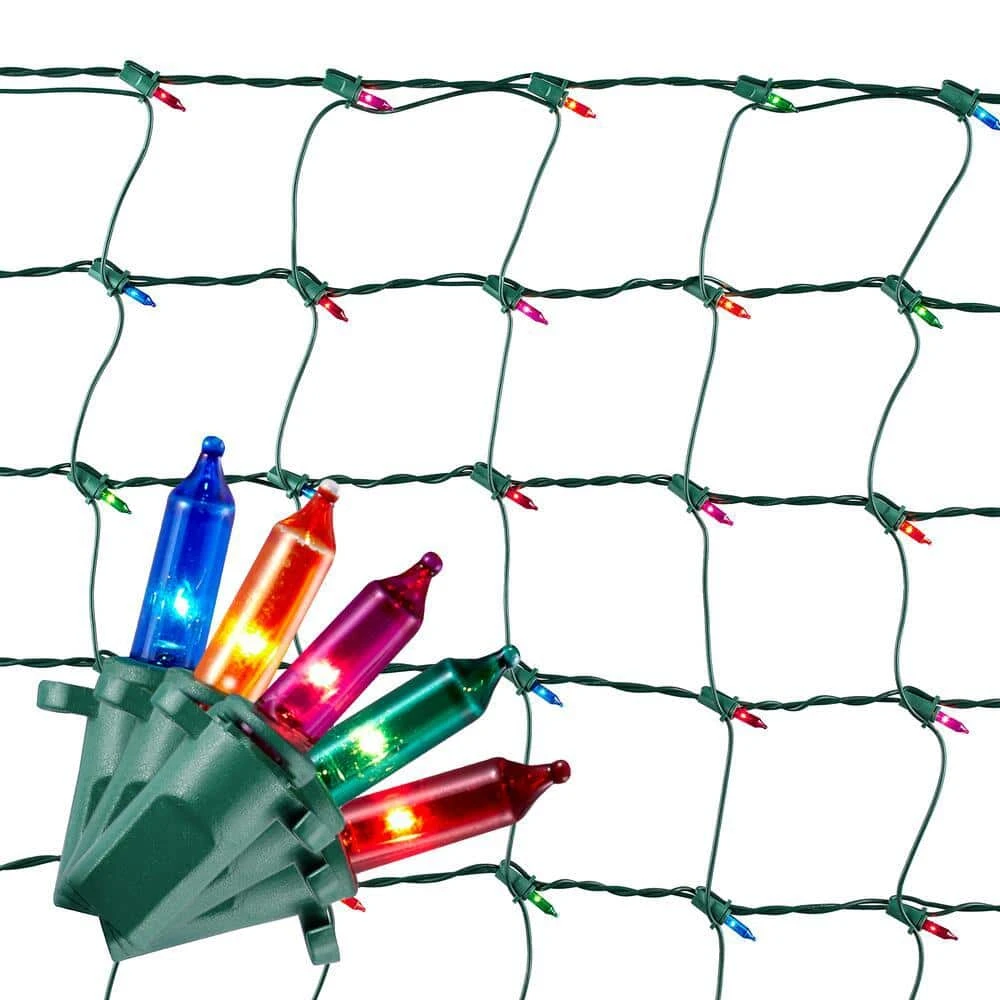 Go all out on your Christmas yard decoration with these multicolor net lights. The 150 incandescent mini lights provide powerful illumination to create a jolly atmosphere, while the included spare bulbs make replacement quick and easy. Able to connect with up to two additional sets (not included), these net lights let you cover more area with fewer power sources, and UL certification ensures safety. Featuring a reach of 4 feet x 6 feet, these multicolor net lights offer wide coverage to wrap your fence, bushes or shrubbery.