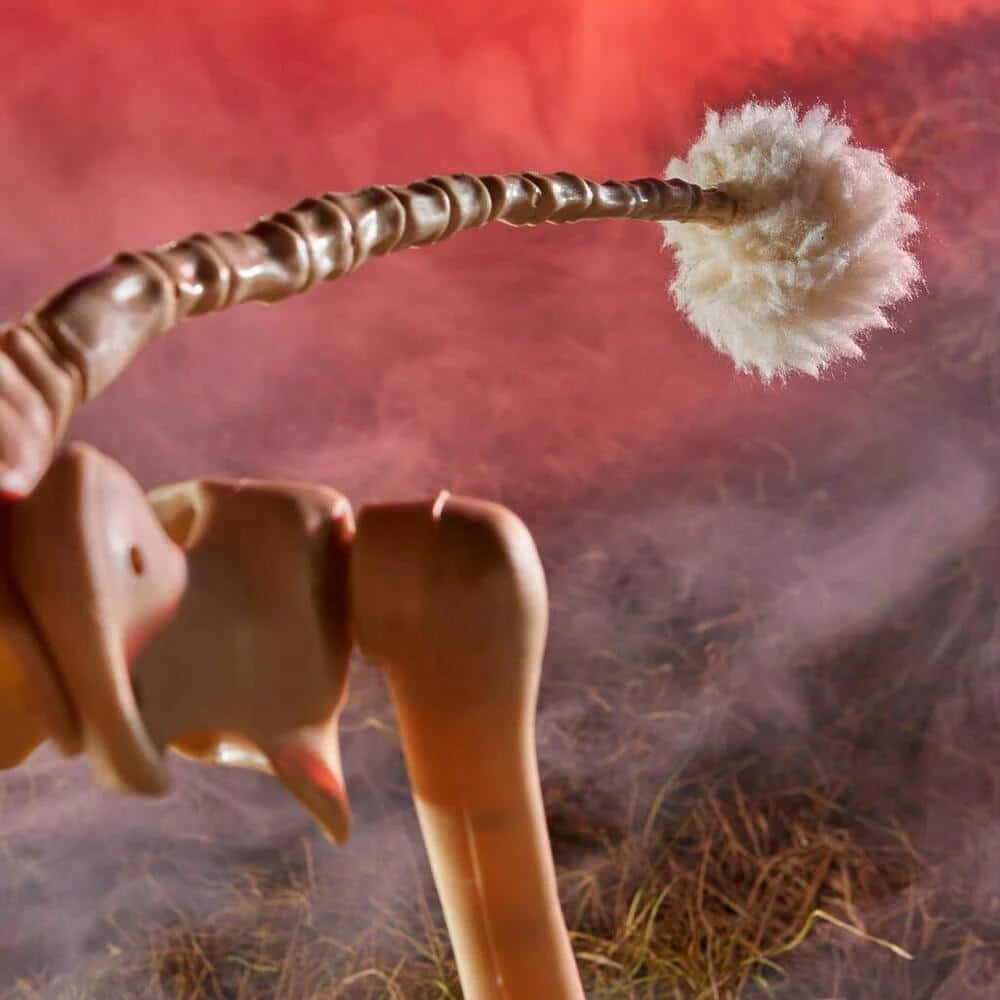 Herd in the Halloween season with this poseable animated sitting skeleton poodle. The red LED eyes give off a ghoulish glow into the night, while chilling growling and barking sounds elicit screams and shouts. A sound sensor gets the scares started, and a versatile, battery-powered design supports plenty of placement options indoors or on your porch. With realistic bone details and hair material accents, this poseable animated sitting skeleton poodle lets you set a spooky scene.