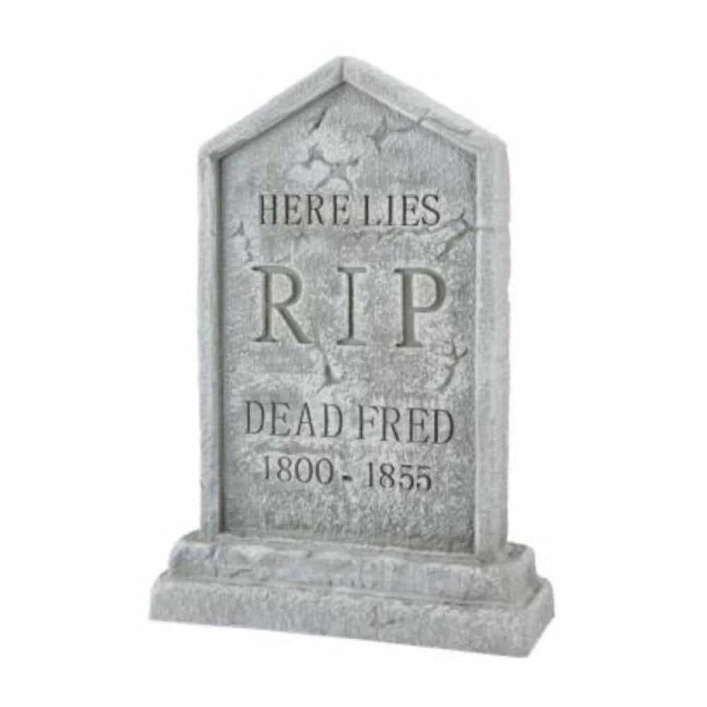Fill your guests with unbound dread by placing this 24-inch blow mold tombstone in your yard’s Halloween-themed graveyard scene. The faux stone finish in combination with detailed cracks and ornamentation helps this eerie tombstone showcase a terrifyingly convincing design, making your yard’s spooky display the talk of the neighborhood throughout the trick-or-treat season. This gray-tone blow mold tombstone features a weighted base for extra stability in case of heavy winds, and the durable plastic material allows stress-free outdoor placement for frights and delights no matter the weather.