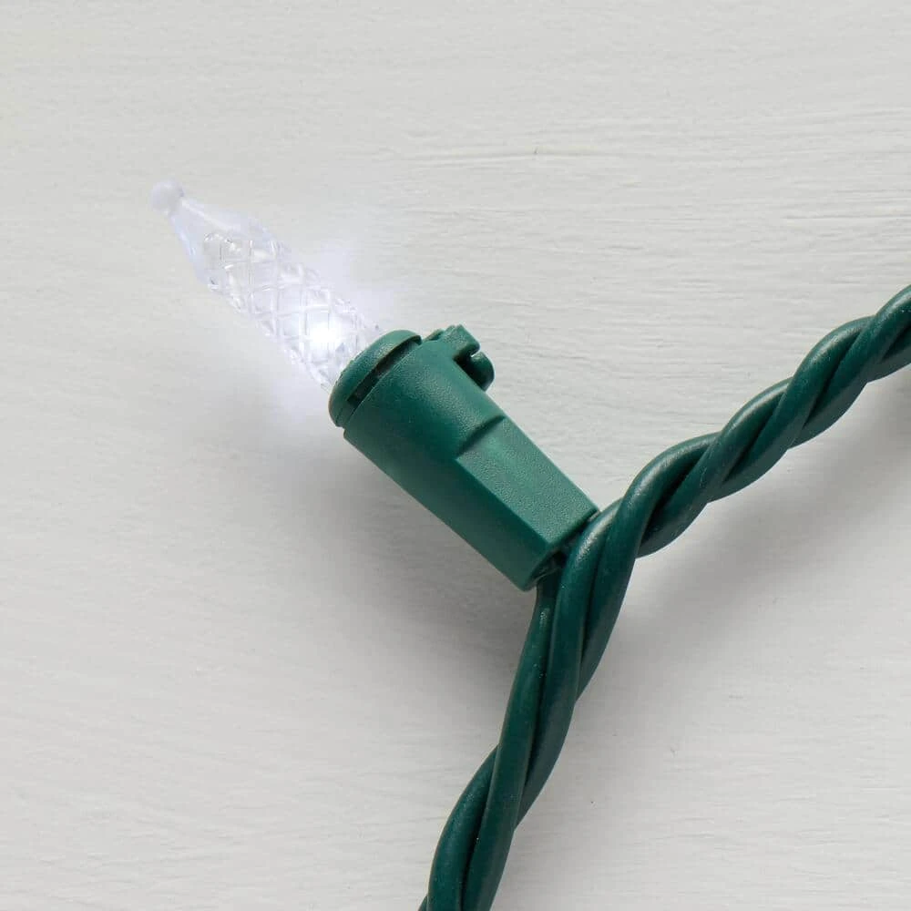 Brighten up your holiday celebratory setup with this 200 cool white light string. The 4-inch lead-in length enables connectivity with up to 18 other sets, to handle all your bushes and trees, while the energy-efficient LEDs stay cool to the touch and deliver radiant illumination to your space. This 200 cool white light string has a durable construction to let you create a festive ambience both indoors and outdoors, and the faceted design provides wide coverage for enhanced lighting.