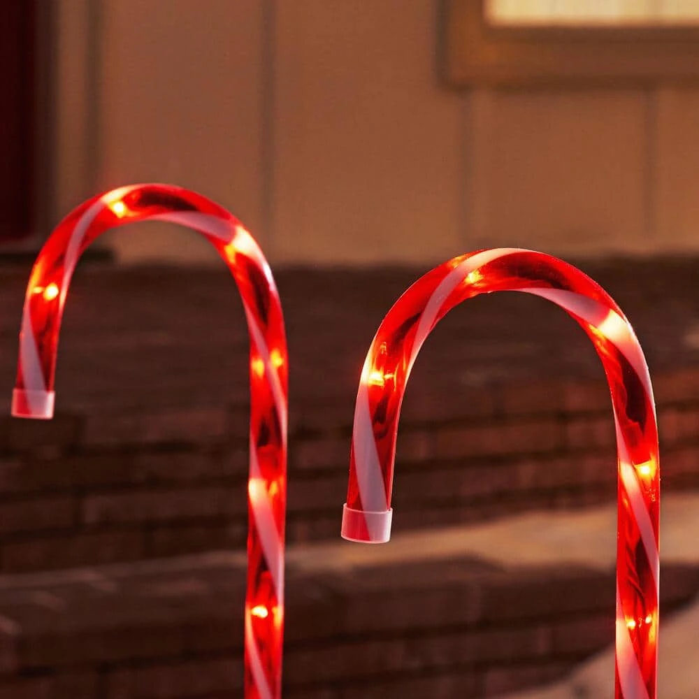 - Candy cane pathway lights cast a classic Christmas silhouette
