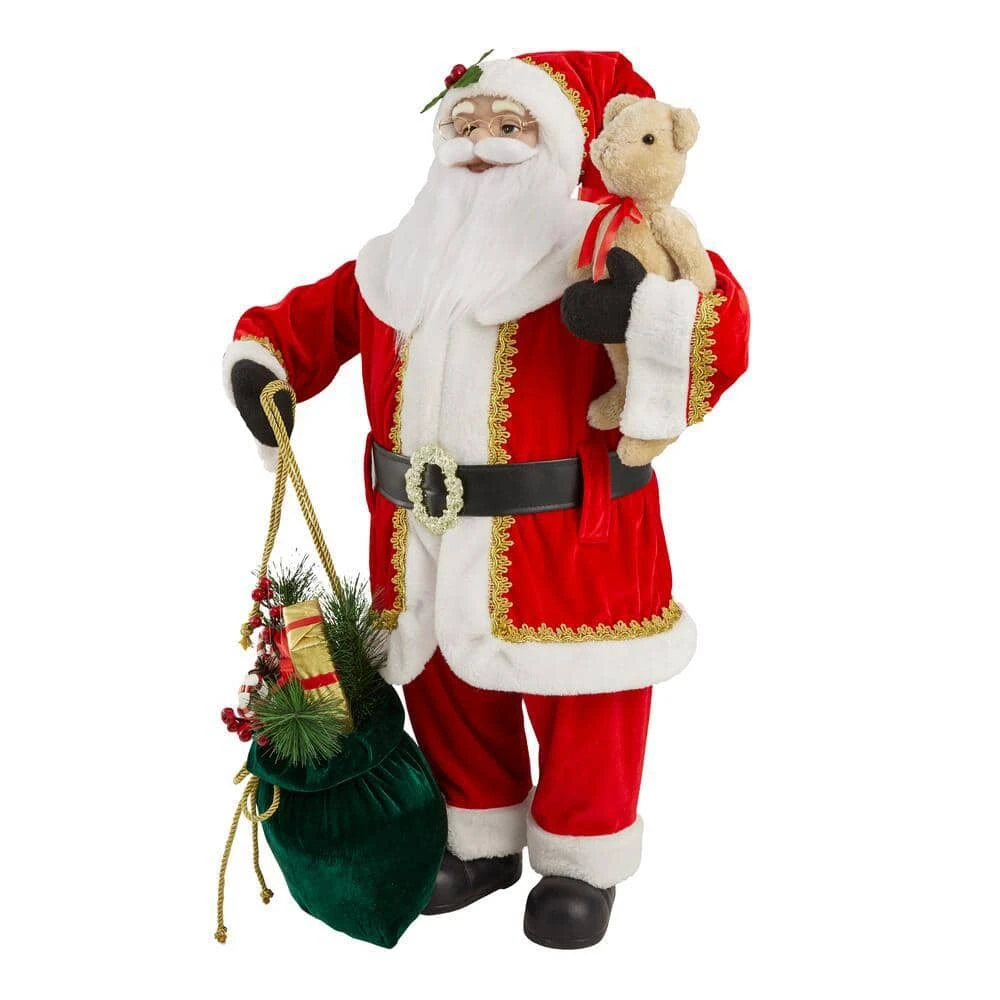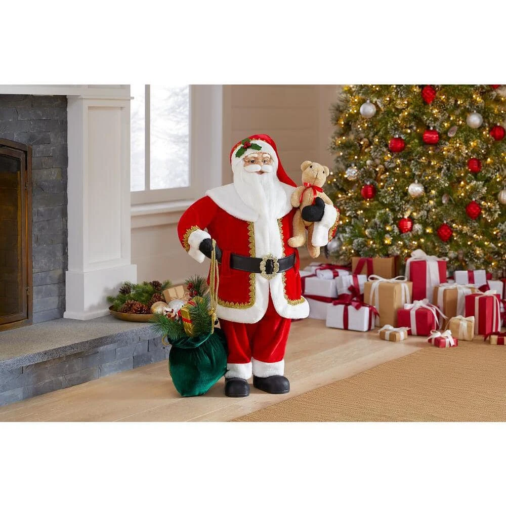 Add a touch of holiday magic to your home with this Christmas Santa figure. The jolly gift giver stands ready to delight with his bag of goodies and an adorable bear, and the 3-foot height makes this seasonal accent perfect for placement next to your tree or fireplace. Hand-painted details offer a classic look, while the simple setup requires no assembly for hassle-free decorating. With a traditional design, this Christmas Santa figure makes it easy to transform your living room into a darling North Pole scene.