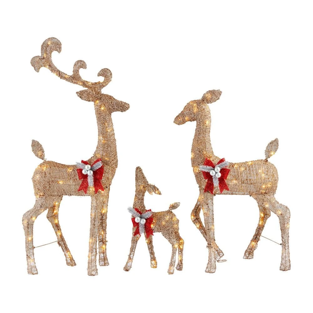 - Set includes a three-piece deer family yard sculpture with 160 LEDs