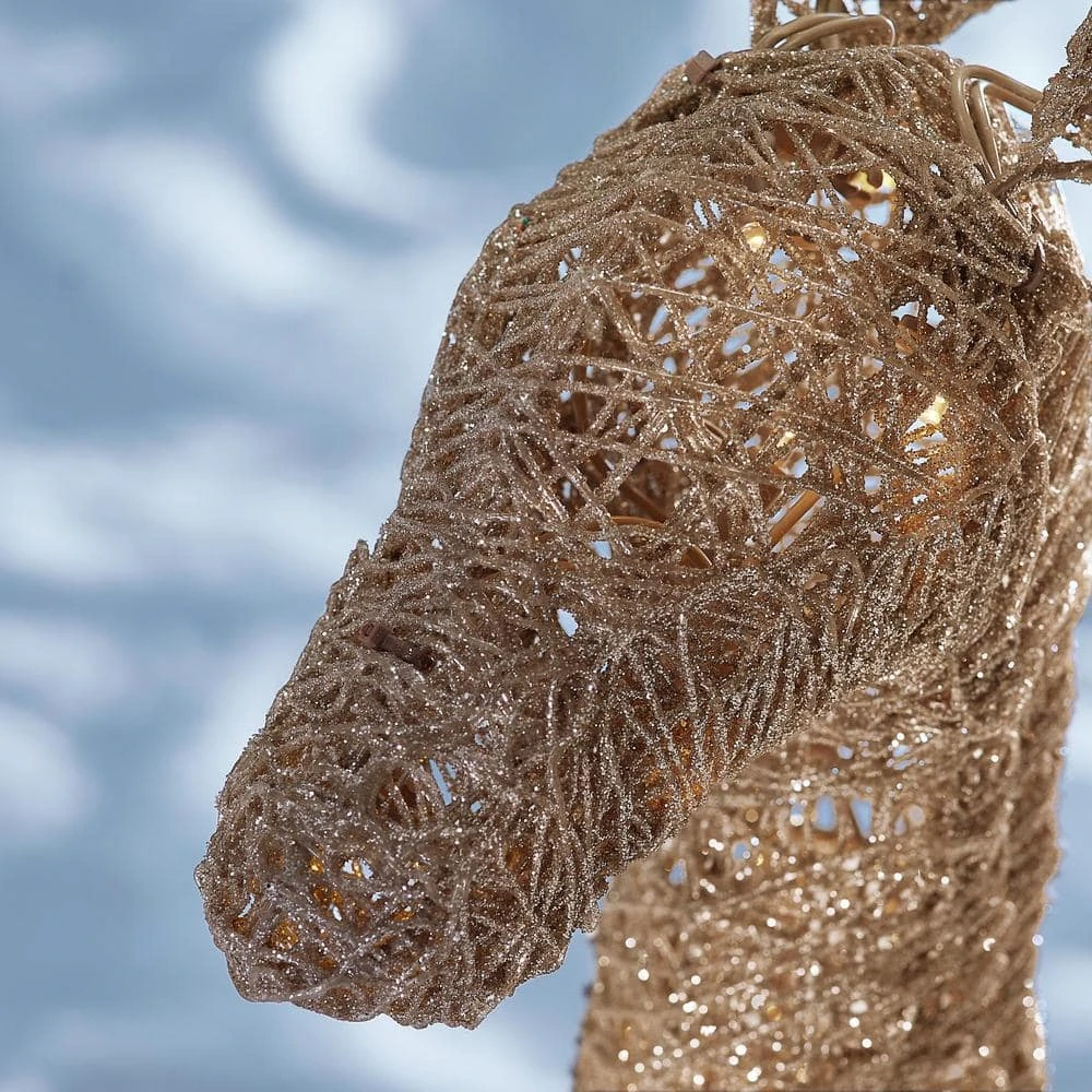 Bring the wonders of the forest fauna to your lawn with this LED gold deer family sculpture. This endearing trio enhances your front yard’s festive ambience with wintry whimsy, and the 160 LEDs complement the charming design with a cheerful sparkle. The energy-efficient lighting from the LED bulbs offers season-long illumination. Made with PVC and featuring a resilient metal frame construction, this LED gold deer family sculpture stands up to regular use in outdoor spaces, allowing for worry-free placement in gardens, lawns and yards to greet visitors as they arrive.