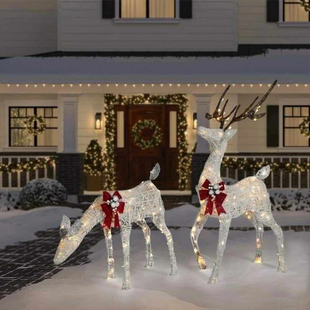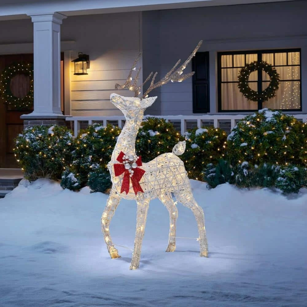 Add wondrous woodland appeal to your seasonal setup with this Polar Wishes deer with bow yard sculpture. The metal and PVC wrap construction easily handles snow and wind, delivering a brilliant accent to your home for the holidays. A beautiful bow adds the perfect finishing touch to this graceful forest creature. Light up your lawn to warmly welcome guests with 105 white LEDs. Place this Polar Wishes deer with bow yard sculpture indoors or out to bring a little sophistication to your Christmas decor.