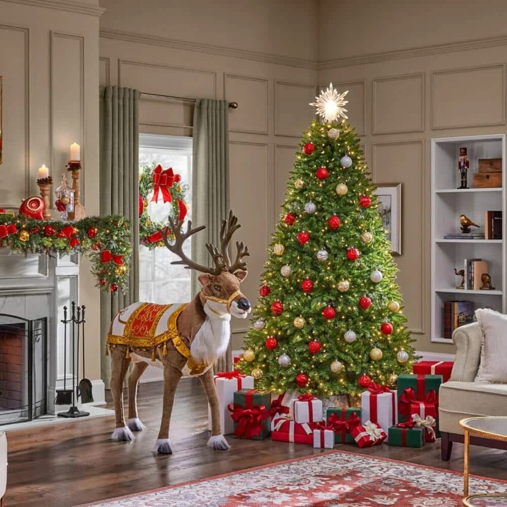 Celebrate an enchanting holiday season with this 50-inch animated reindeer. The woodland creature moves its head from side to side to the tune of a festive Christmas song, entertaining your guests and filling your home with cheer and delight. A tough polypropylene construction offers durability, while lifelike antlers and plush fur boast realistic details to elevate your holiday display. Measuring 50 inches high, this life-size animated reindeer helps transform your living room into a Christmas wonderland.