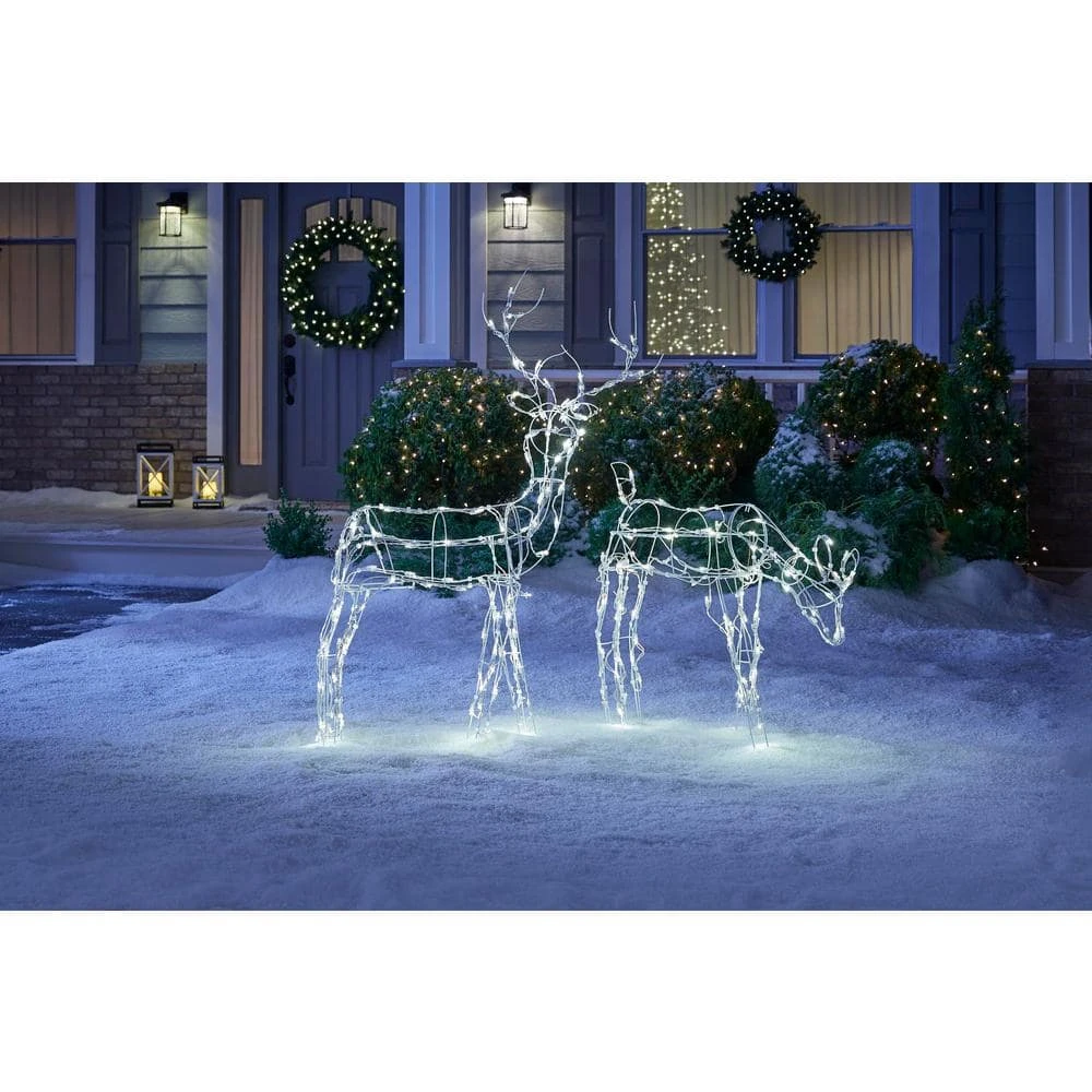 Indulge in the holiday spirit by decorating your lawn with this Home Accents Holiday wire reindeer yard sculpture. The 120 LEDs cast a bright glow throughout your festive nights and remain cool to the touch for safe use. A metal wire frame creates a focal point in your front yard, while the included stakes allow for easy setup. This Home Accents Holiday wire reindeer yard sculpture stands 4 feet tall to greet your guests and neighbors all season long.