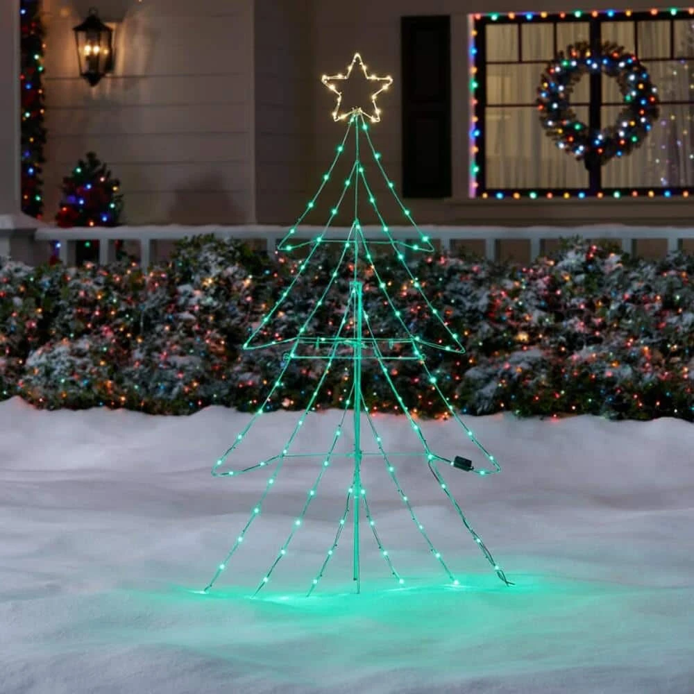 Amp up your home’s festive atmosphere with this 65-inch wire tube light-up Christmas tree. The tough metal frame withstands changing outdoor conditions, while the cool 118 green lights add sparkle and shine. Energy-efficient LEDs boast reliable longevity while remaining cool to the touch. Use the stake and stand to set up and secure this festive holiday accent in your yard or foyer. Designed for interior and exterior areas, this plug-in wire tube light-up Christmas tree provides you with a versatile holiday decorating solution.