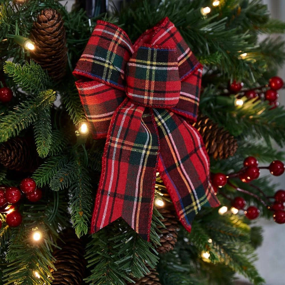 Celebrate the most wonderful time of the year with this 5-foot pre-lit LED artificial spruce Christmas tree. Festooned with berries, pine cones and bows, this holiday classic lets you bring the outdoors into your home and liven up your space with nature-inspired elements. The verdant 184-tip foliage delivers the look of real spruce, while 50 warm white lights amplify a festive mood. This plug-in pre-lit LED artificial spruce Christmas tree comes with a 24-foot cord for extended reach, and a pot to hold the tree.