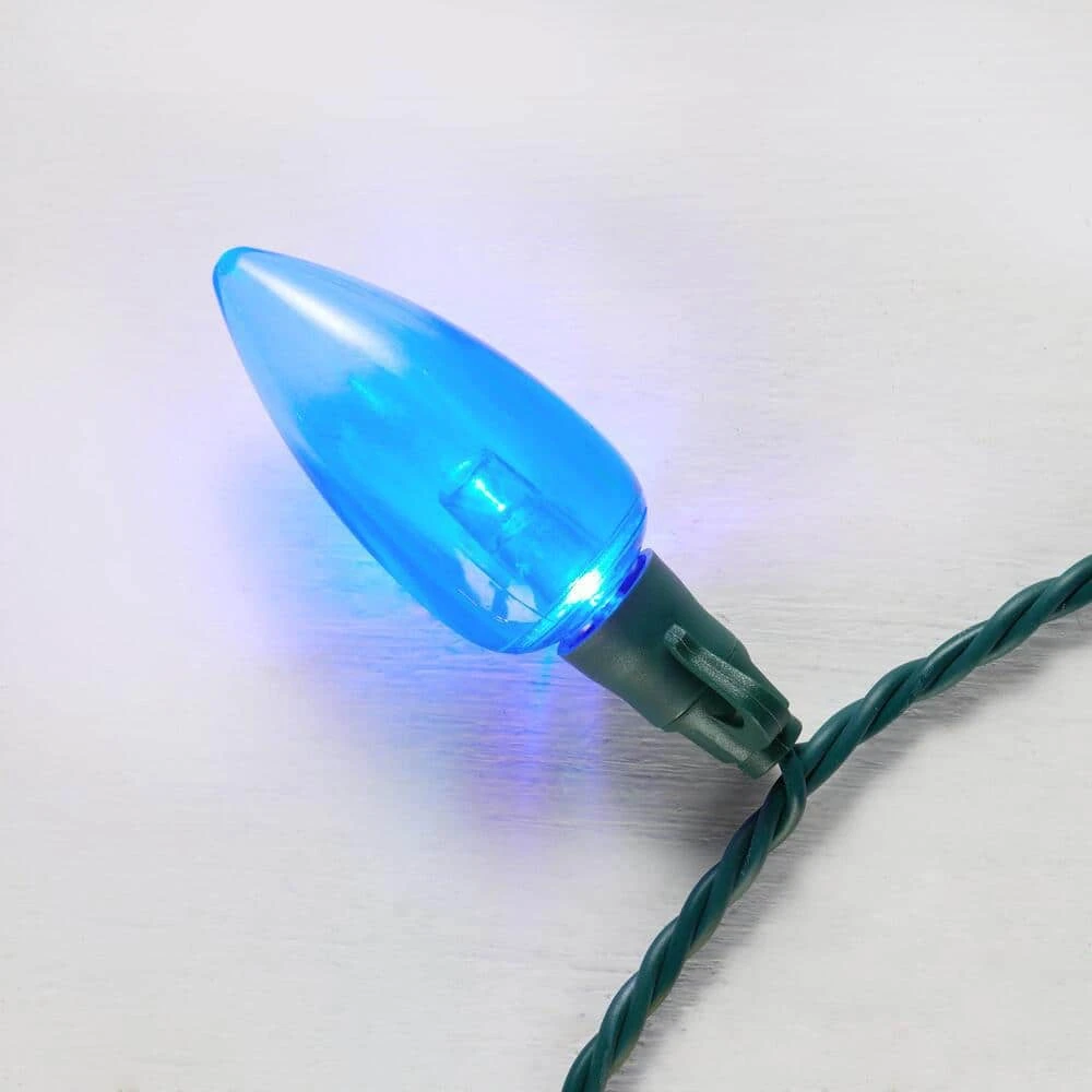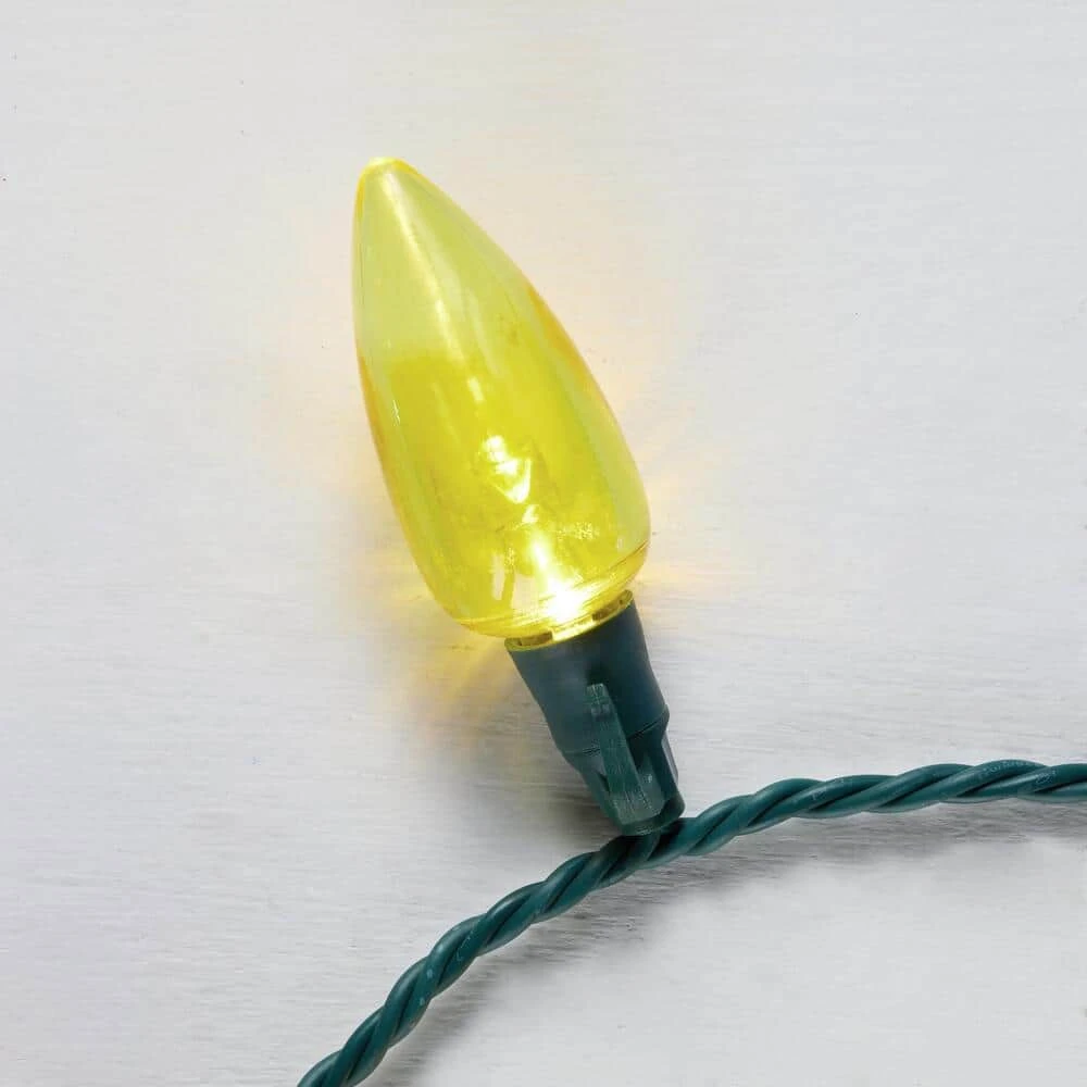 Celebrate the most wonderful time of the year with this 32.6-foot C9 LED ultra-bright transparent warm white Christmas light set. The 50 bulbs deliver warm white lighting to complement your sparkly holiday decor, while the flicker-free, continuous-on technology fosters a festive mood. Enjoy reliable long-lasting performance from the energy-efficient LED bulbs. Offering over 32 feet of lighted length, this C9 LED ultra-bright transparent warm white light set lets you highlight your windows, fireplace mantel or stairway rail for the holiday.