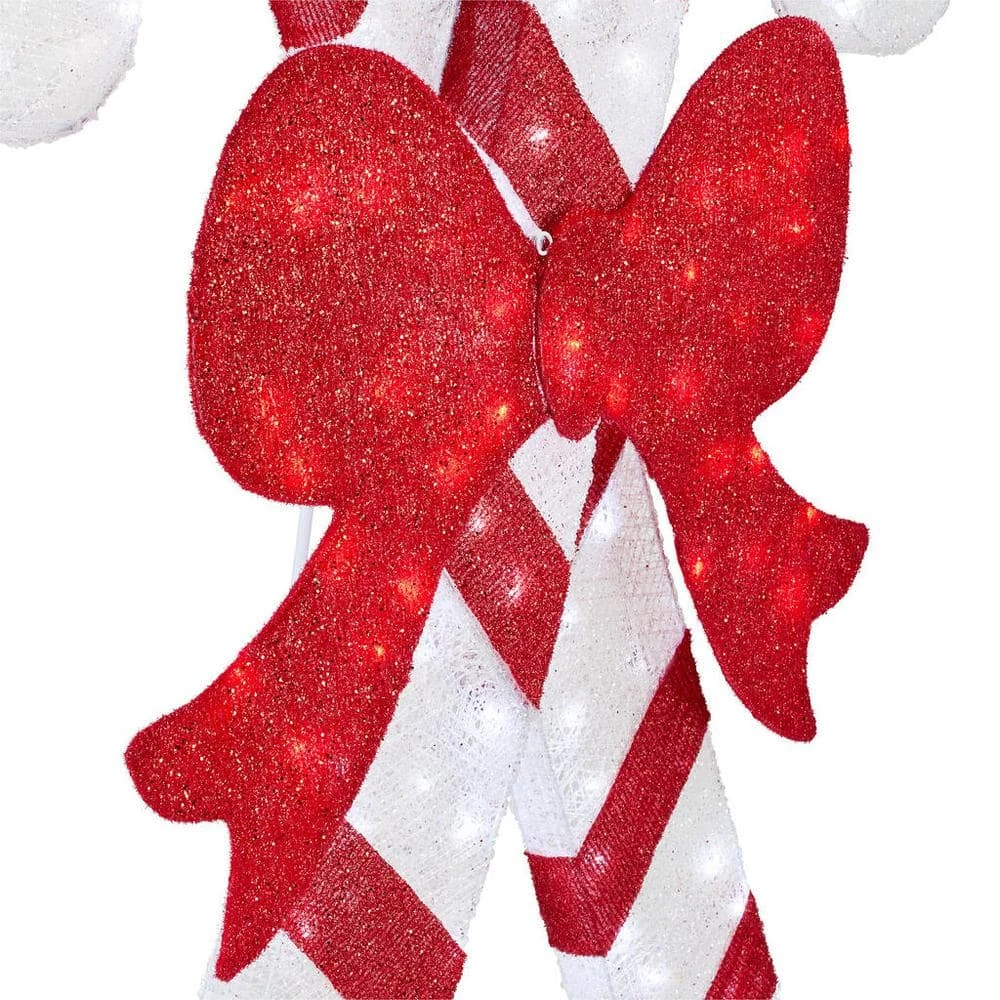 Add a sweet finishing touch to your Christmas decor with this 72-inch acrylic LED candy cane. The red bow lets you incorporate classic Christmas hues and imagery, while the 175 red and white lights bring sparkle and shine to perk up your festive gatherings. Designed for indoor and outdoor use, the tough metal frame and acrylic construction hold up to changing temperatures and conditions. This acrylic LED candy cane is easy to set up and comes with extra bulbs and fuses for fuss-free replacement and continuous illumination.