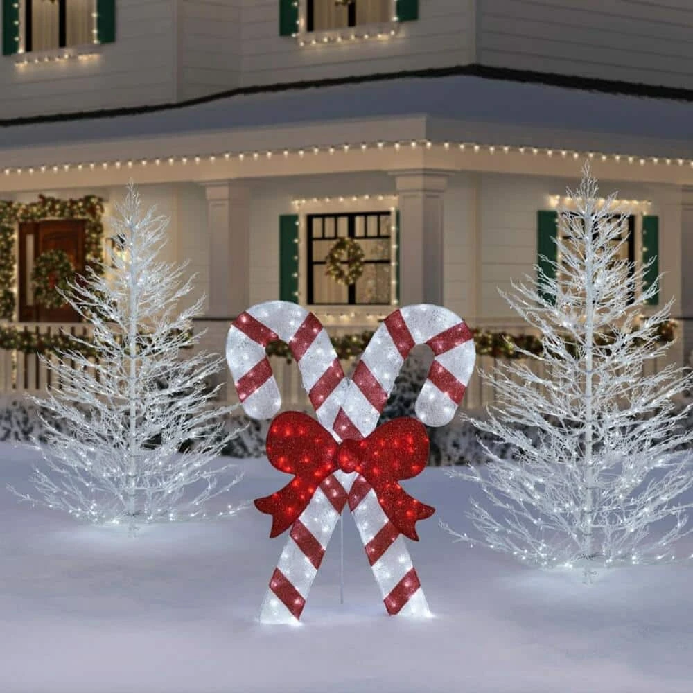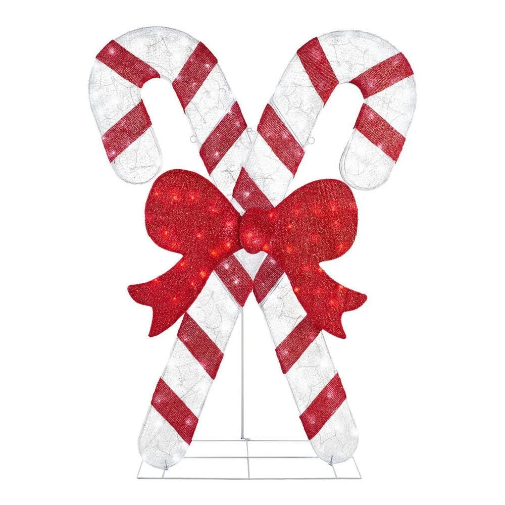 - Acrylic LED candy cane measures 72 in. H x 51.5 in. W x 20.5 in. D