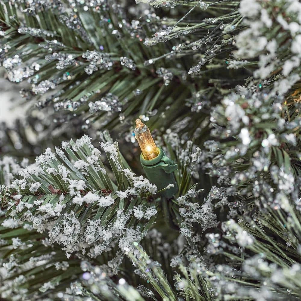 Bring a touch of shimmer and shine to your seasonal display with this Sparkling Amelia pre-lit artificial potted pine tree. Glitter accents and pine cones create a stunning look, while the 388 branch tips make it easy to showcase your favorite ornaments. This tree comes in a decorative urn, so you can decorate without a skirt or stand. A collection of 150 clear mini incandescent lights sparkle throughout the night, making this Sparkling Amelia pre-lit artificial potted pine tree a cheerful addition to your winter tableau.