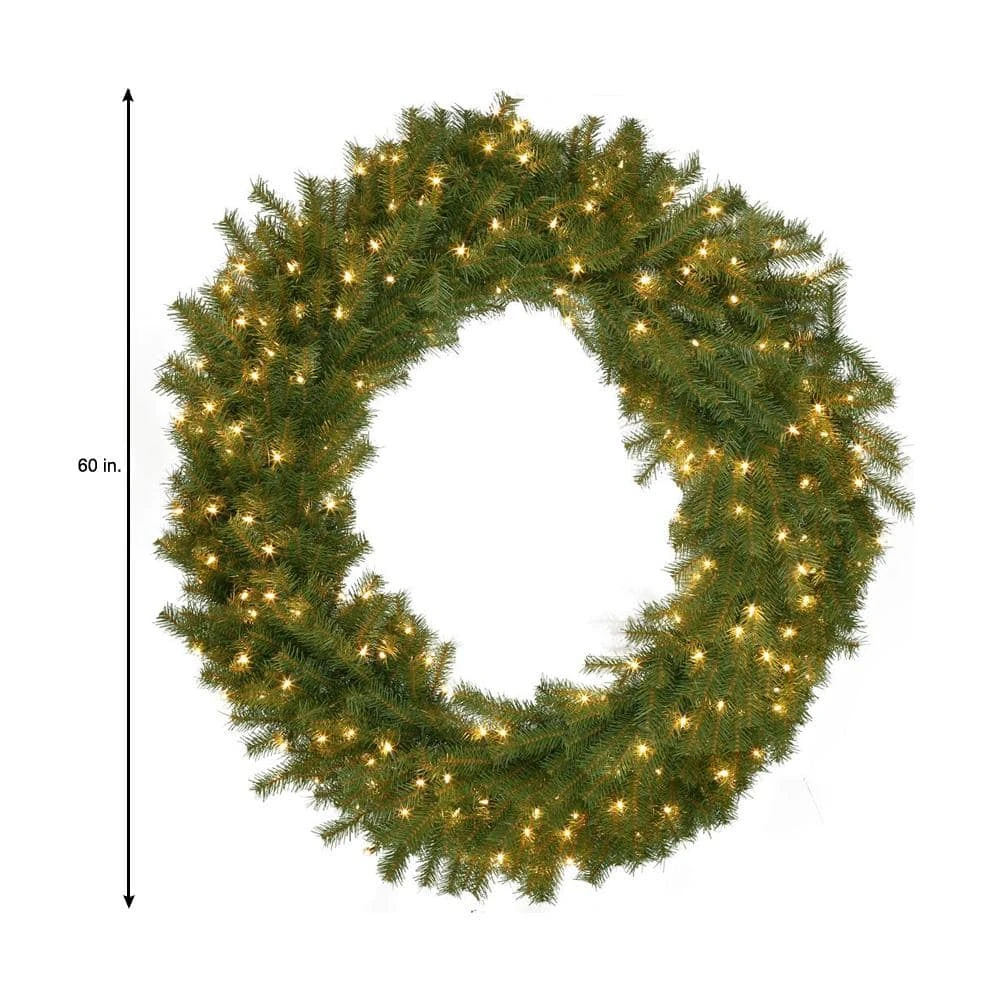 Get your space ready for the holidays with this 60 in. Prelit Norwood Fir Wreath. It features 300 clear lights to perfectly light up your space. Easily place this on your door or in your entryway to greet your guests.