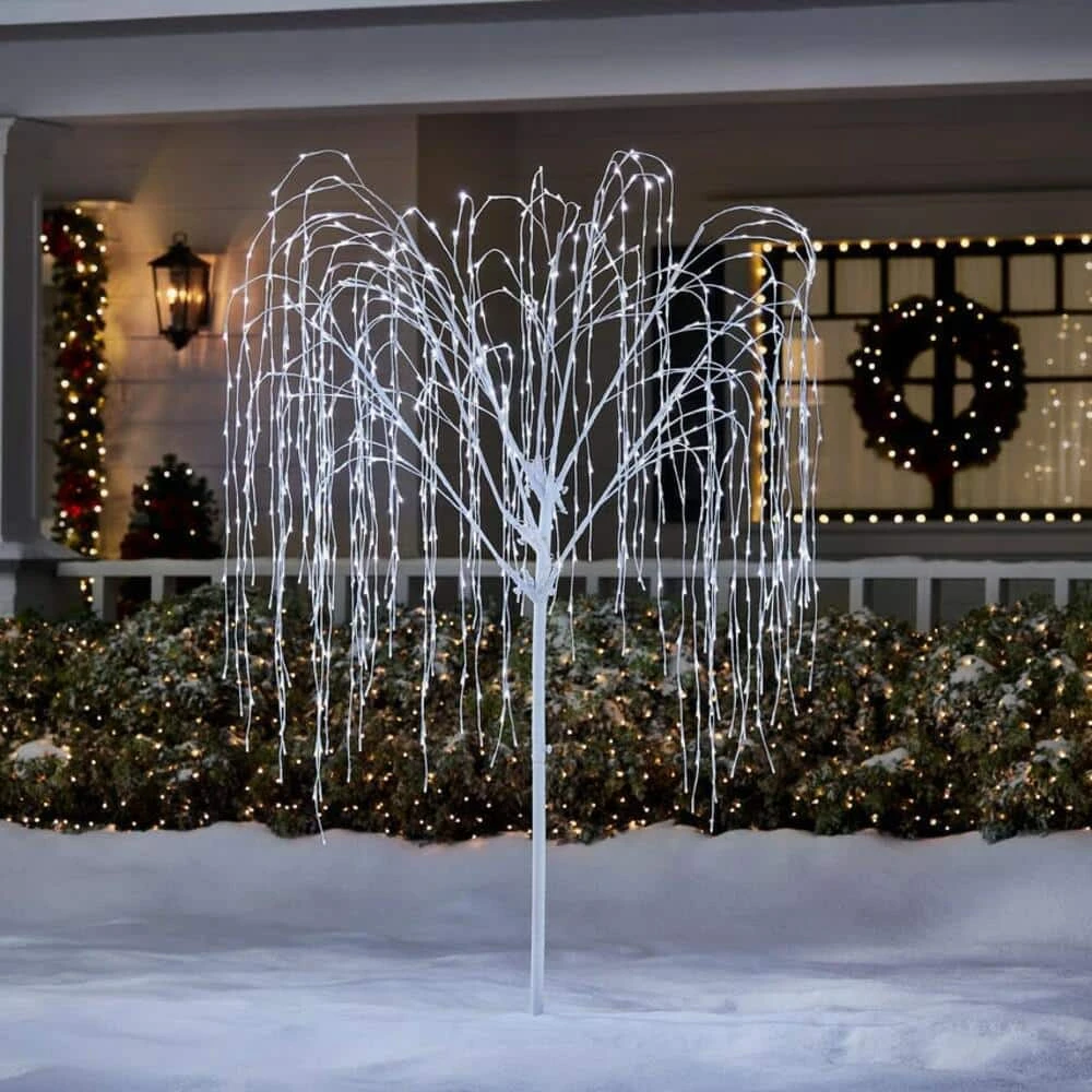Create a snow-inspired winter scene with this 7-foot pre-lit willow tree. The 800 pure white LEDs create a brilliant lighting effect, illuminating your outdoor space throughout the night. A timer lets you set the lights to power on and off for hassle-free operation, while the included ground stake keeps this whimsical willow firmly in place. With a white metal frame, this pre-lit willow tree offers lasting durability and makes a beautiful addition to your holiday decor theme.