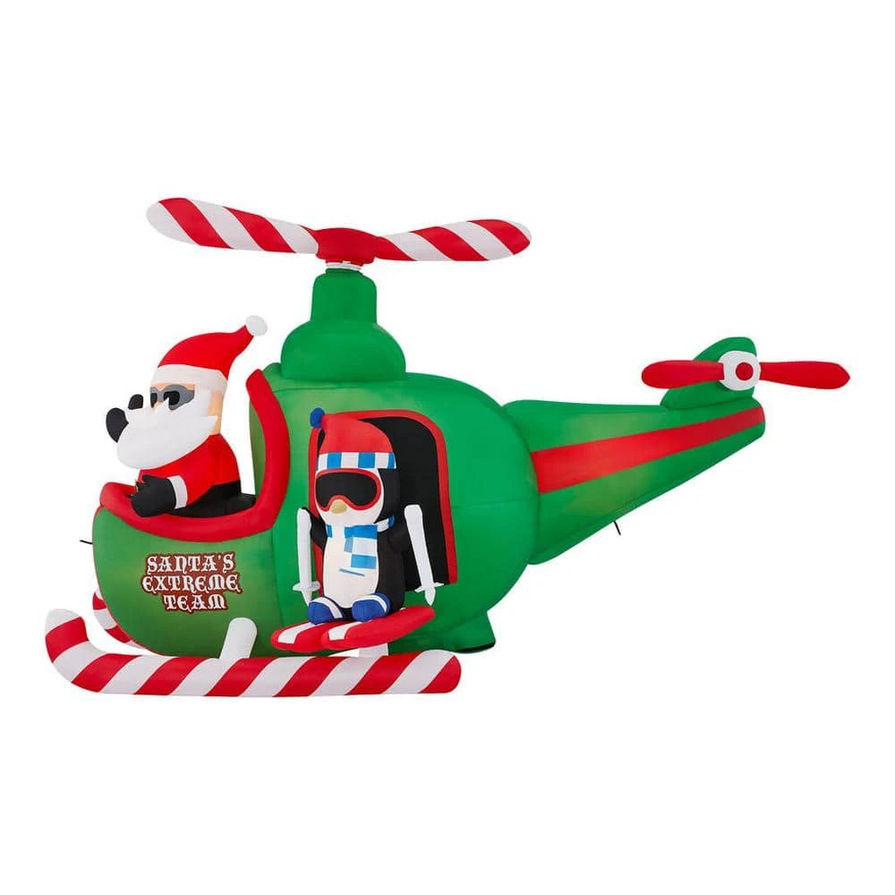 - Includes one animated Airblown inflatable helicopter with Santa and penguin