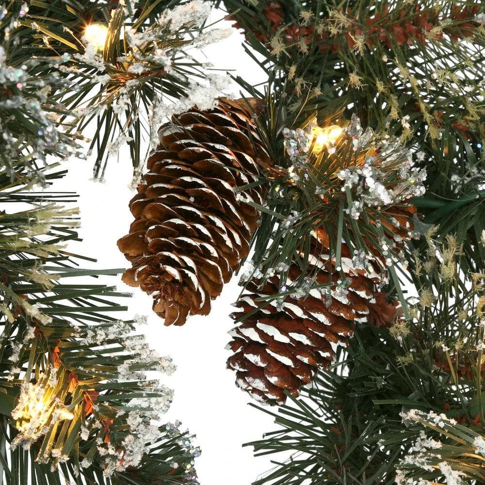 Beautify your home with this 9 ft Prelit Sparkling Amelia Garland. It features evergreen branches with pinecones. The 50 clear incandescent bulbs easily complement your other holiday decorations. Make your space perfect for capturing images and creating holiday memories.
