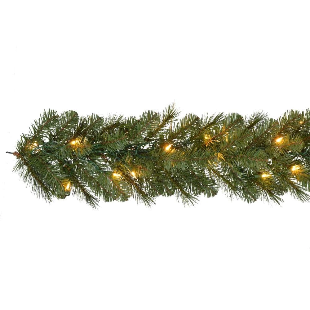- Pre-lit pine garland spruces up your banister or porch railing