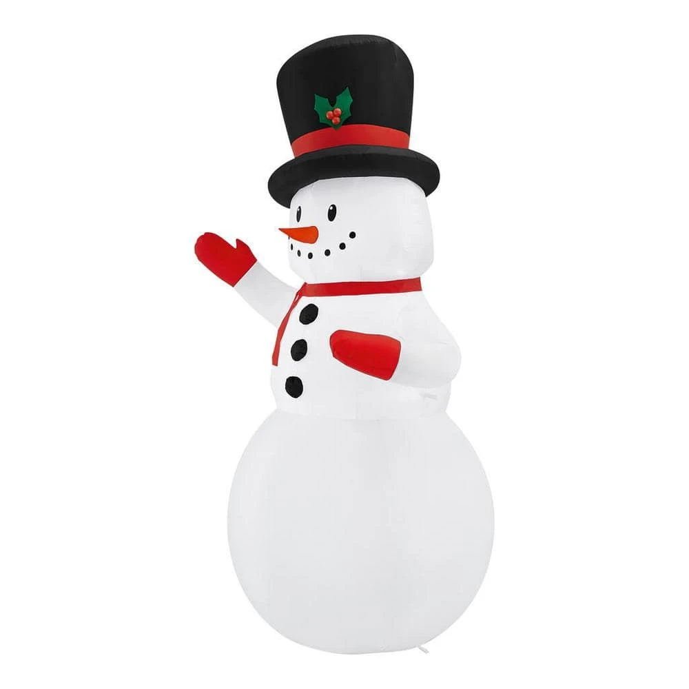 Get in the spirit of the season with this Airblown snowman Christmas inflatable. Rocking a dashing top hat and red winter gear, this delightful holiday addition sets a festive mood during your celebrations. Bright, energy-efficient LEDs deliver starry appeal once the night sets in, and the collapsible design allows convenient storage and transportation. This Airblown snowman Christmas inflatable self-inflates quickly to simplify installation, and the included stakes and tethers keep your accent stable throughout the yuletide season.